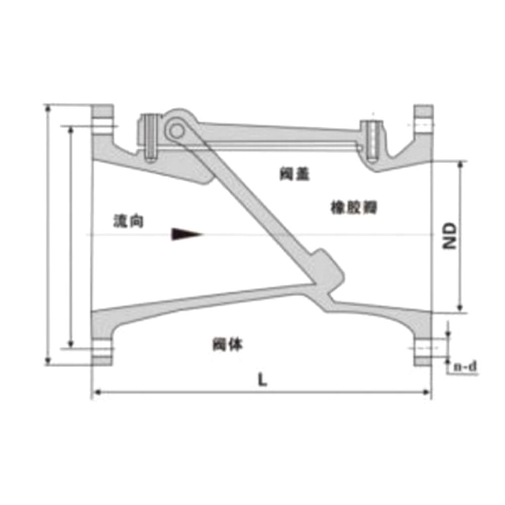 Tento ventil se používá hlavně na výstupu z potrubních čerpadel ve vodovodních a kanalizačních systémech, požární ochraně, klimatizaci, elektřině, stavebnictví, potravinářství, úpravě vody, komunální správě, stavbě lodí a dalších potrubích, aby se zabránilo zpětnému toku médií. Vzhledem k tomu, že těsnicí kroužek tohoto produktu má nakloněnou konstrukci, doba uzavření je krátká, což může snížit tlak vodního rázu. Kotouč ventilu je vyroben z nitrilové oleji odolné pryže a ocelového plechu, který je lisován při vysokých teplotách. Má dobrou odolnost proti erozi a těsnicí výkon. Struktura produktu je jednoduchá a údržba, opravy a přeprava jsou snadné.